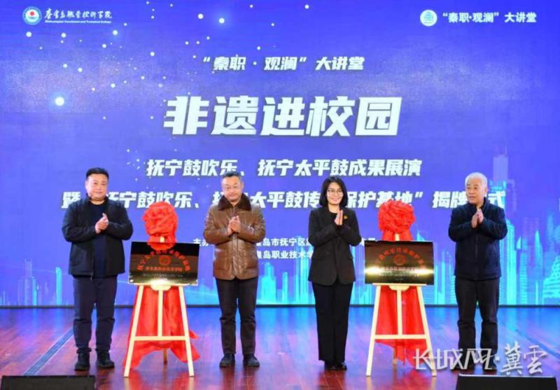 长城网·冀云客户端讯(通讯员 张莹 张祎)11月11日,秦皇岛职业技术学院“秦职・观澜”大讲堂之非遗进校园——“抚宁鼓吹乐、抚宁太平鼓传承保护基地”揭牌仪式暨成果展演在学院报告厅举行。