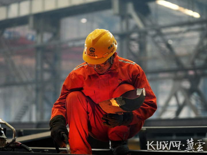 这是交通强国建设重点项目的关键线路,也是中铁山桥集团有限公司电焊特级技师张明职业生涯中的又一项挑战。箱体采用技术标准较高的熔透焊,和普通的焊接相比,技术更复杂,需要多层多道焊接,一天只能完成三四米的焊接任务。张明专注地调整着焊枪角度,弧光映照着他沉稳的面庞,手中的焊枪稳定地划出那道熟悉的轨迹。