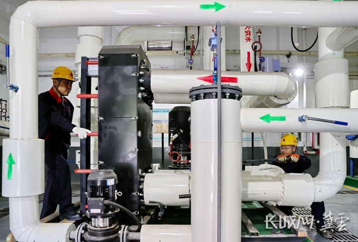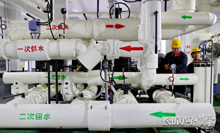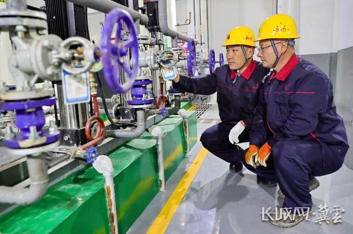 工作人员在热力站进行巡检。曹建雄 摄