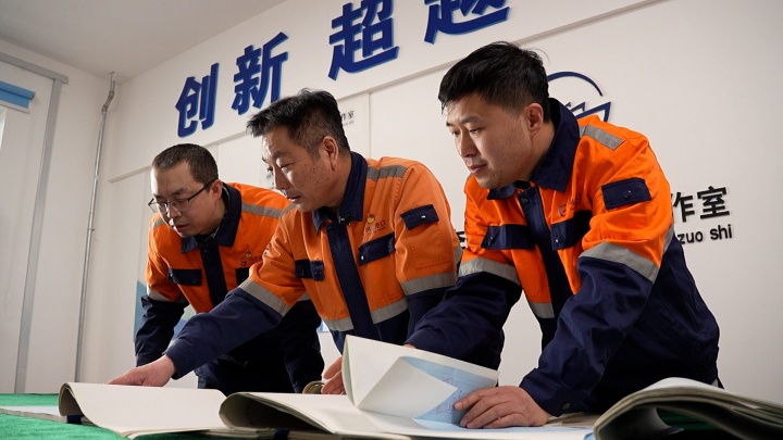 李伏玉与同事一起分析设计图纸。长城网·冀云客户端记者 王震军 摄