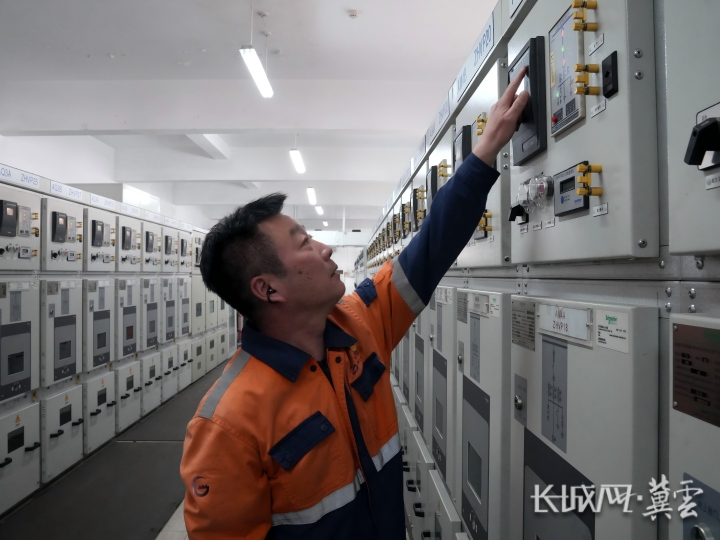 李伏玉在检查配电室高压柜。长城网·冀云客户端记者 王震军 摄