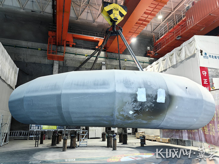 地下110米,灯光如昼。巨大的厂房穹顶之下,一座重176吨,高2.5米,最大直径近12米的“钢铁蜗牛”正静静地放置在距离地面不到半米高的支墩上。