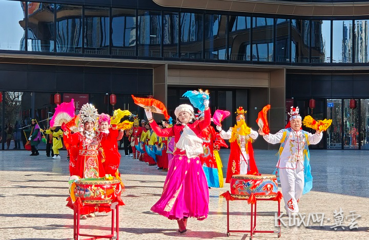 活动现场热闹非凡、喜气洋洋。花样舞龙气势恢宏,双龙翻腾、灵动飞舞;铿锵锣鼓振奋人心,彩带龙翩跹起舞,尽显昂扬风采;互动秧歌的演员们身着盛装,舞步轻盈,将节日的热闹氛围推向高潮。