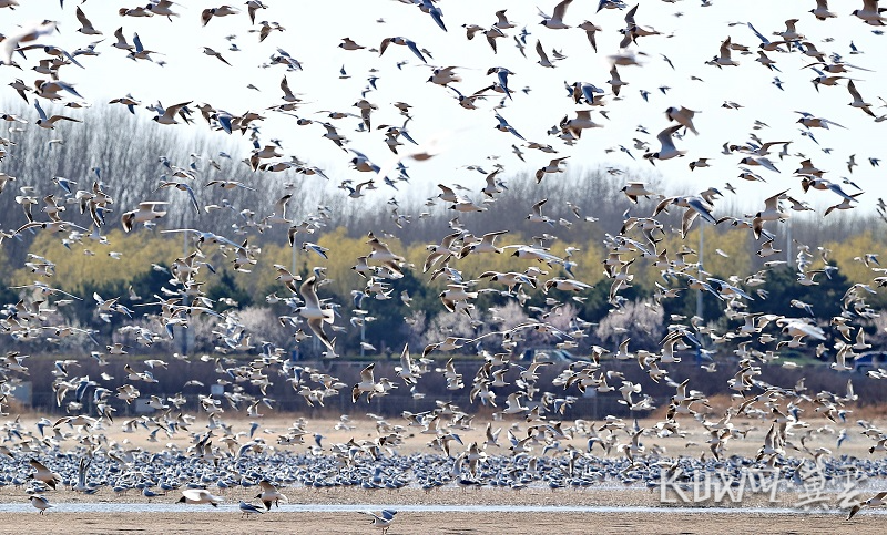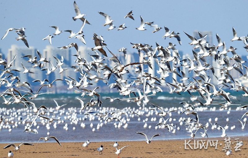 近日,秦皇岛市北戴河区鸽子窝公园附近海域,成千上万只鸥鸟翩然聚集,在蓝天碧海间凌空飞舞,尽显春日生机。(长城网·冀云客户端记者 祖迪 通讯员 曹建雄)